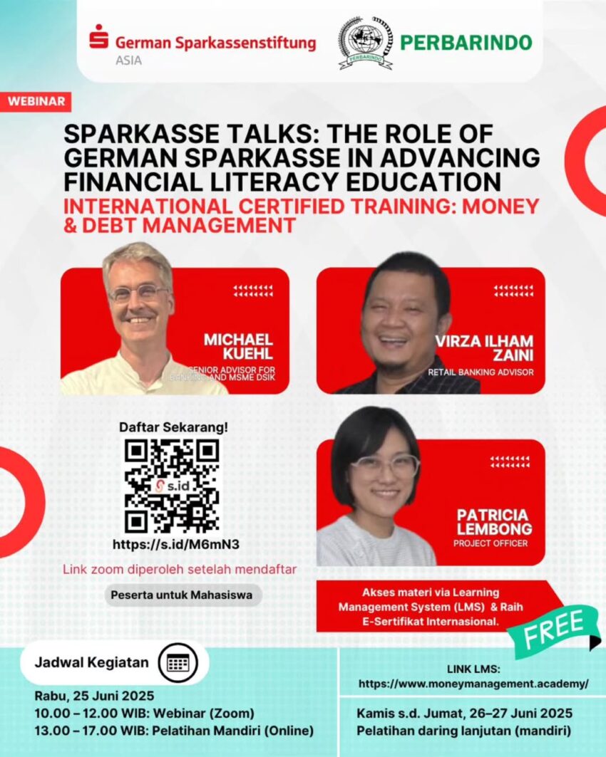 SPARKASSE TALKS: The Role of German Sparkasse in Advancing Financial Literacy Education INTERNATIONAL CERTIFIED TRAINING: MONEY & DEBT MANAGEMENT ✨ Hadiri dua kegiatan sekaligus dalam satu kesempatan!🌟 Webinar inspiratif dan…